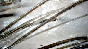 V Kadeřnictví Fontána začíná vše diagnostikou pomocí trichologické kamery, která dokáže zvětšit vlas i pokožku až 200×. Díky tomu přesně vidíme ukotvení vlasových kořínků, jejich sílu, hustotu i stav pokožky. Zjistíme, zda je pokožka přesušená, mastná, podrážděná nebo zatížená nečistotami.