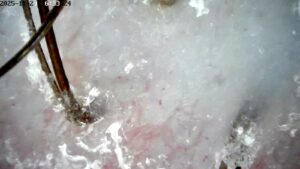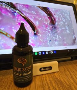 Součástí péče jsou také šampony, kondicionéry a enzymatické peelingy, které jemně čistí, detoxikují a obnovují přirozenou rovnováhu pokožky. Diagnostika pomocí trichologické kamery umožňuje detailní pohled na stav vlasové pokožky a vlasových folikulů, což nám pomáhá zvolit přesně cílený postup péče.